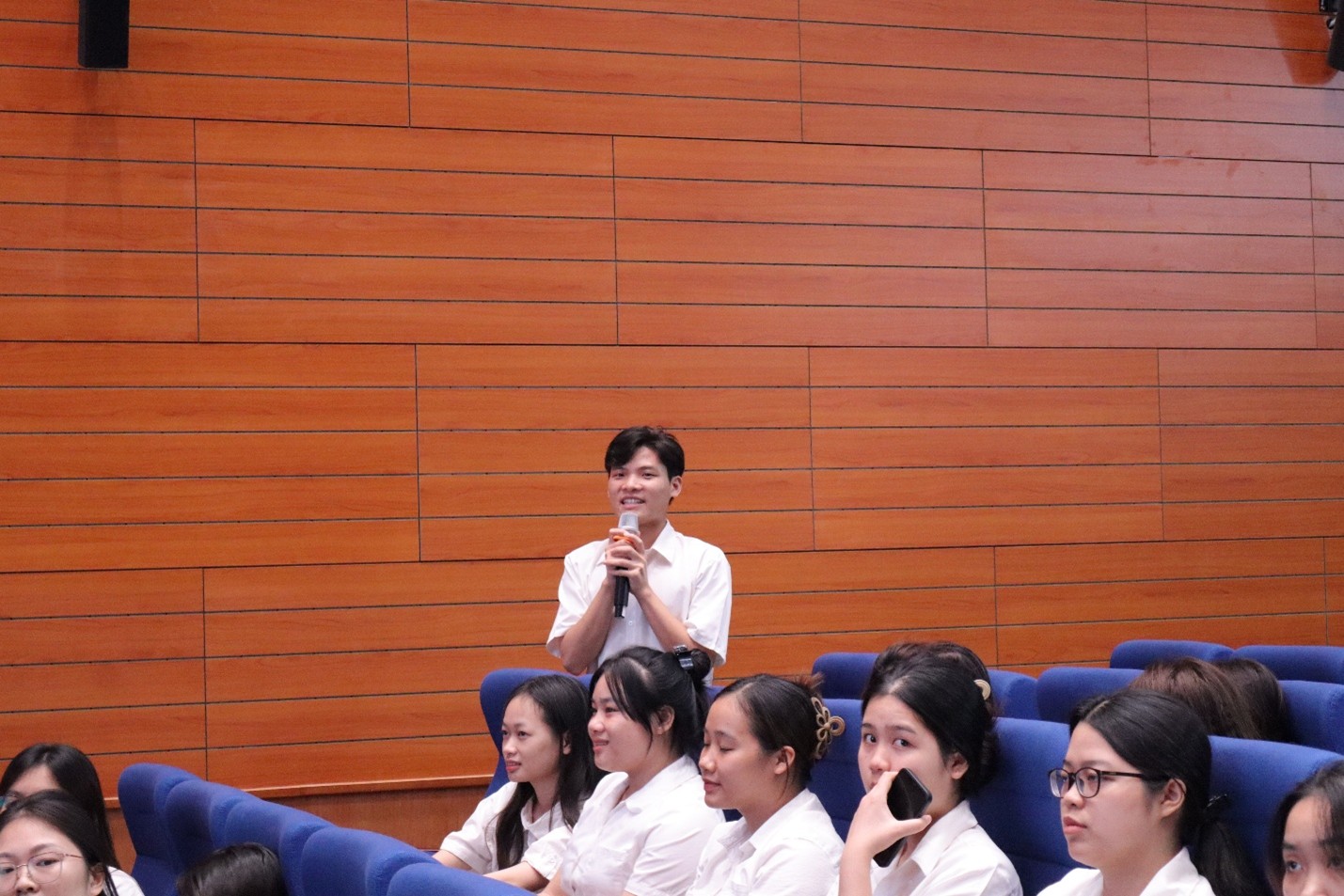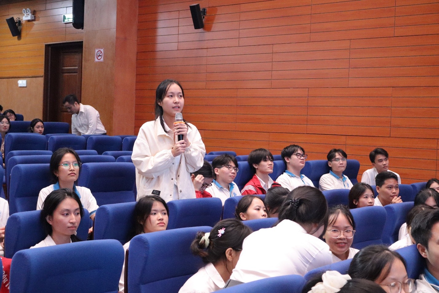Tại buổi tập huấn, sinh viên đã được nghe những chia sẻ thực tiễn, gần gũi và bổ ích từ các báo cáo viên khách mời là giáo viên Trường THPT Hai Bà Trưng, Phúc Yên về công tác chủ nhiệm, công tác Đoàn – Đội, tổ chức hoạt động trải nghiệm – hướng nghiệp và công tác giảng dạy môn Tin học ở trường phổ thông.