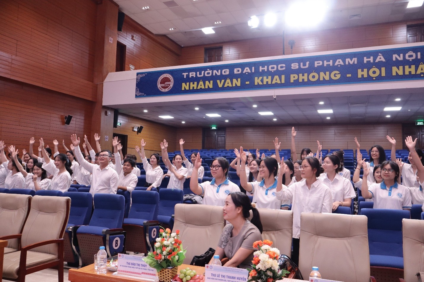 Bên cạnh đó, sinh viên còn được tham gia các hoạt động tương tác, xử lý tình huống sư phạm giả định do chính các thầy cô và học sinh Trường THPT Hai Bà Trưng đưa ra, qua đó rèn luyện kỹ năng giao tiếp, kỹ năng xử lý tình huống trong môi trường thực tế.